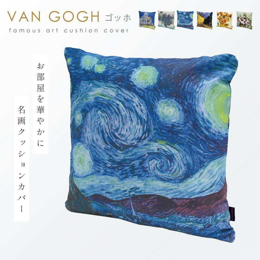 クッションカバー 45×45cm おしゃれ 北欧 モダン クッション カバー アート 絵画 絵 名画 モチーフ グッズ インテリア リビング ソファー 高級 ラグジュアリー 有名絵画 有名画家 画家 ゴッホ Van Gogh ホワイトローズ 夜のカフェテラス ひまわり 大人 名画クッション...