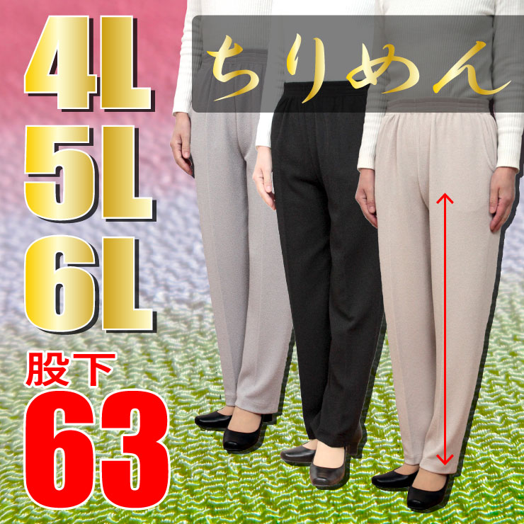 [37390]母の日は5月9日 履かせやすい! 大きいサイズ ウエストゴムで作ったちりめんニットパンツ 敬老 春 秋 股下63cm シニア レディース パンツ ちりめん 無地 縮緬 ポリエステル 70代 80代 90代 ベージュ グレー 茶 黒