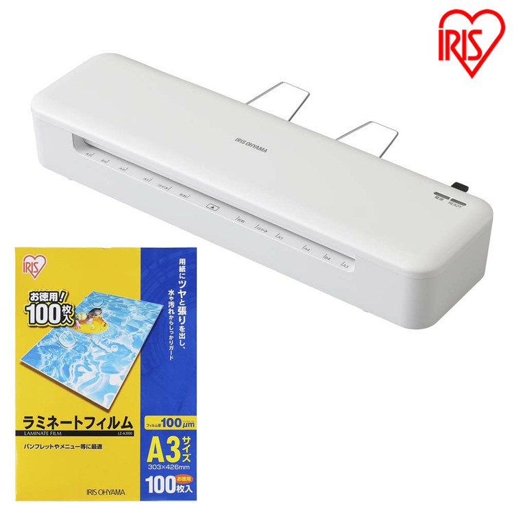 [100円OFFクーポン]ラミネーター A3 HSL-A32-W ホワイト + ラミネートフィルム A3 100枚 100μ ラミネーター フィルム LZ-A3100ラミネーター 送料無料 高速 高速起動 高速起動ラミネーター セット ラミネータ ラミネーター ラミネ アイリスオーヤマ